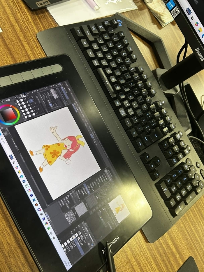 職員のお手本ややり方を聞いて熱心に勉強し、最後にはキャラクターの輪郭を描けるようになりました✌️